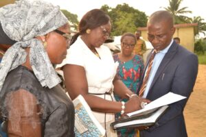 Ene (in white dress), during her visit to one of the schools visited.