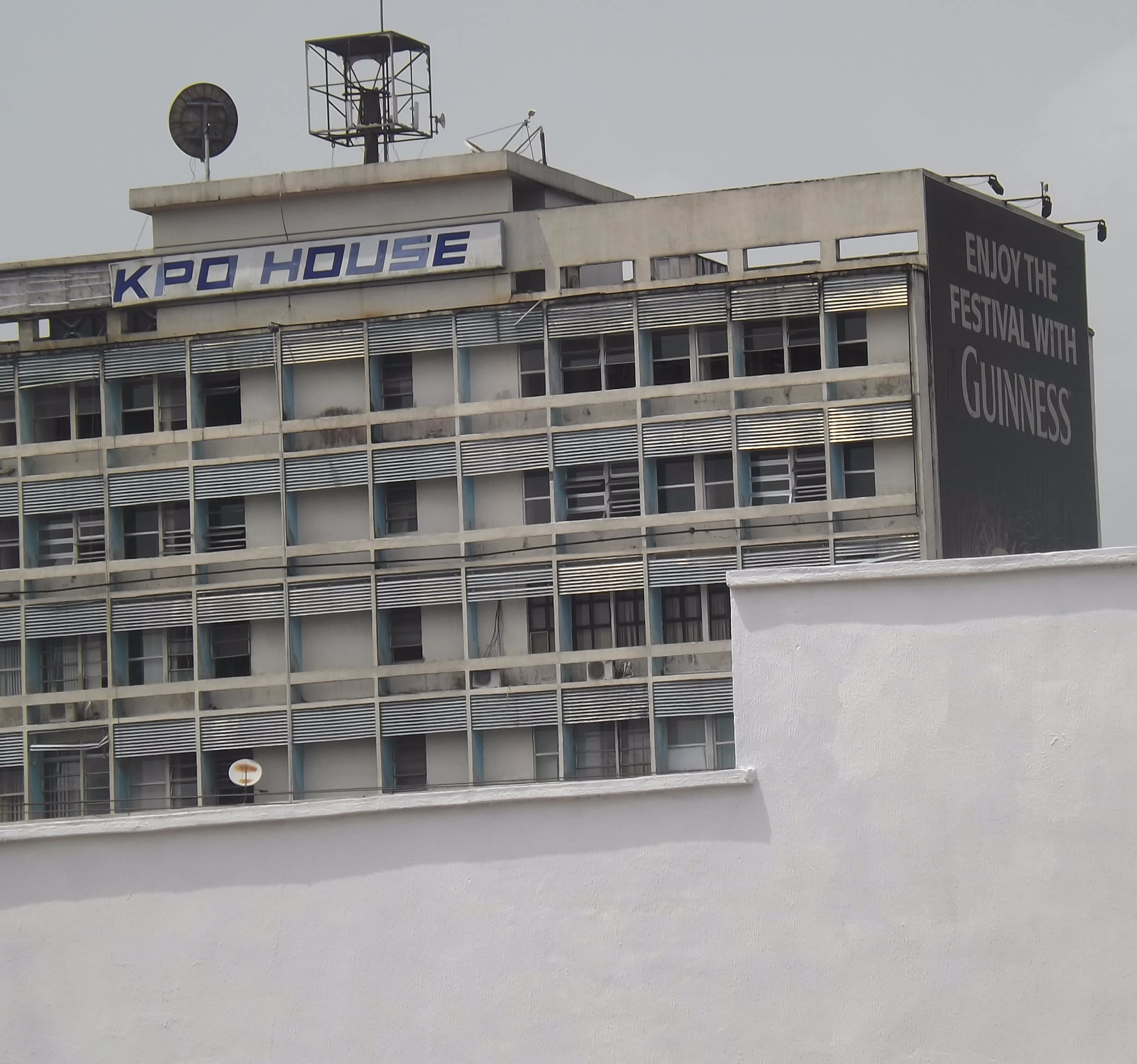Perhaps to understand better what calitown.com is pointing to, at the top of the building’s face, where “OKOI ARIKPO HOUSE” use to be boldly inscribed, the letters “OKOI” are gone, as are the first three letters of the word, “ARIKPO”, leaving the ugly sign, “KPO HOUSE”, hanging on the building. Another source who reacted to the situation told calitown.com that, “for those in-charge of fixing that eye sore, it can remain unattended to provided the other sign on the side of the building, advertising Guinness and giving them money that we never see, remains”. It is an indictment of authorities whose responsibility it is to maintain buildings in the state like this one.