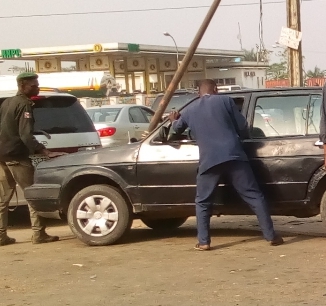Across the length and breadth of Nigeria, several people are currently experiencing torrid times trying to buy petrol. This morning at the NNPC filling station in Calabar, Cross River State, this gentleman wearing a suit, refused to be deterred by his suit as he endured a torrid time, pushing his vehicle in a spirited attempt to secure petrol. Hard times indeed!