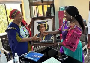 CR POWA boss, Lynda Afegbua, hands the VC a portrait during the visit.
