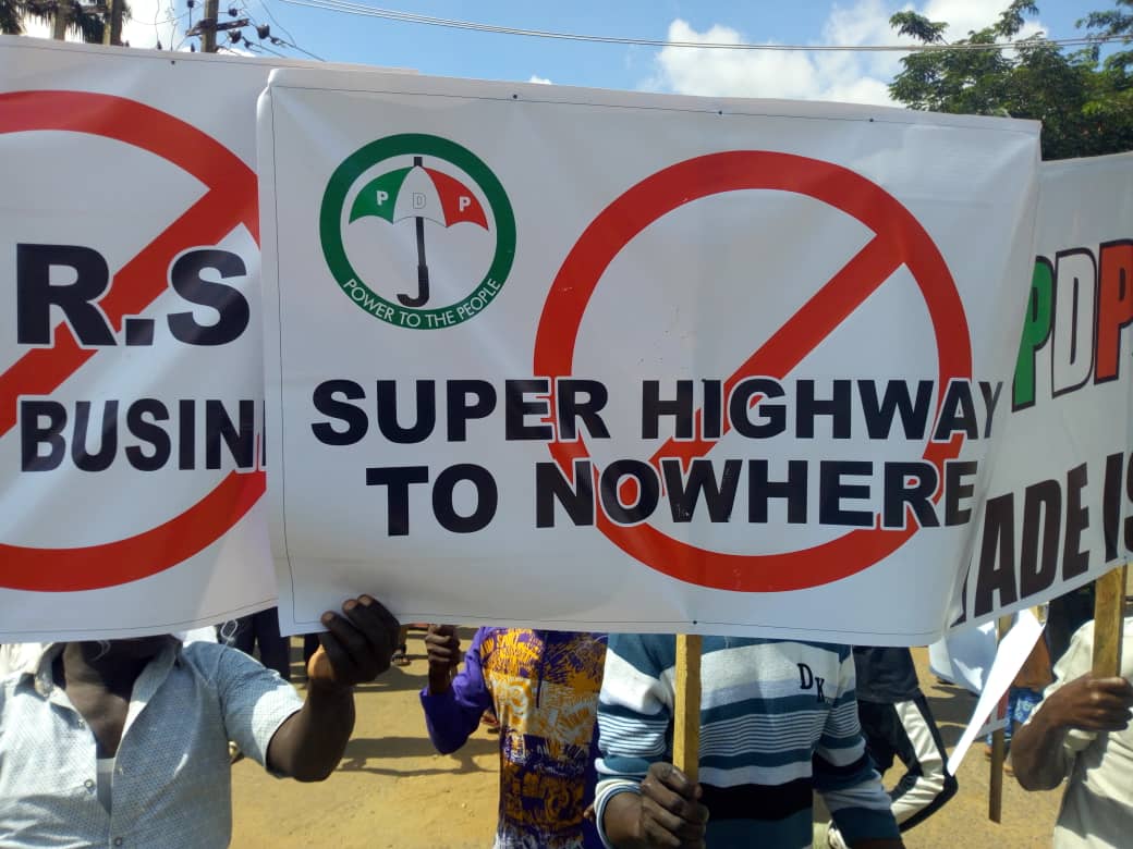 Our reporter live in Abuja, has just sent in pictures of a protest, presently going on at the PDP National Secretariat, Abuja. More details shortly.