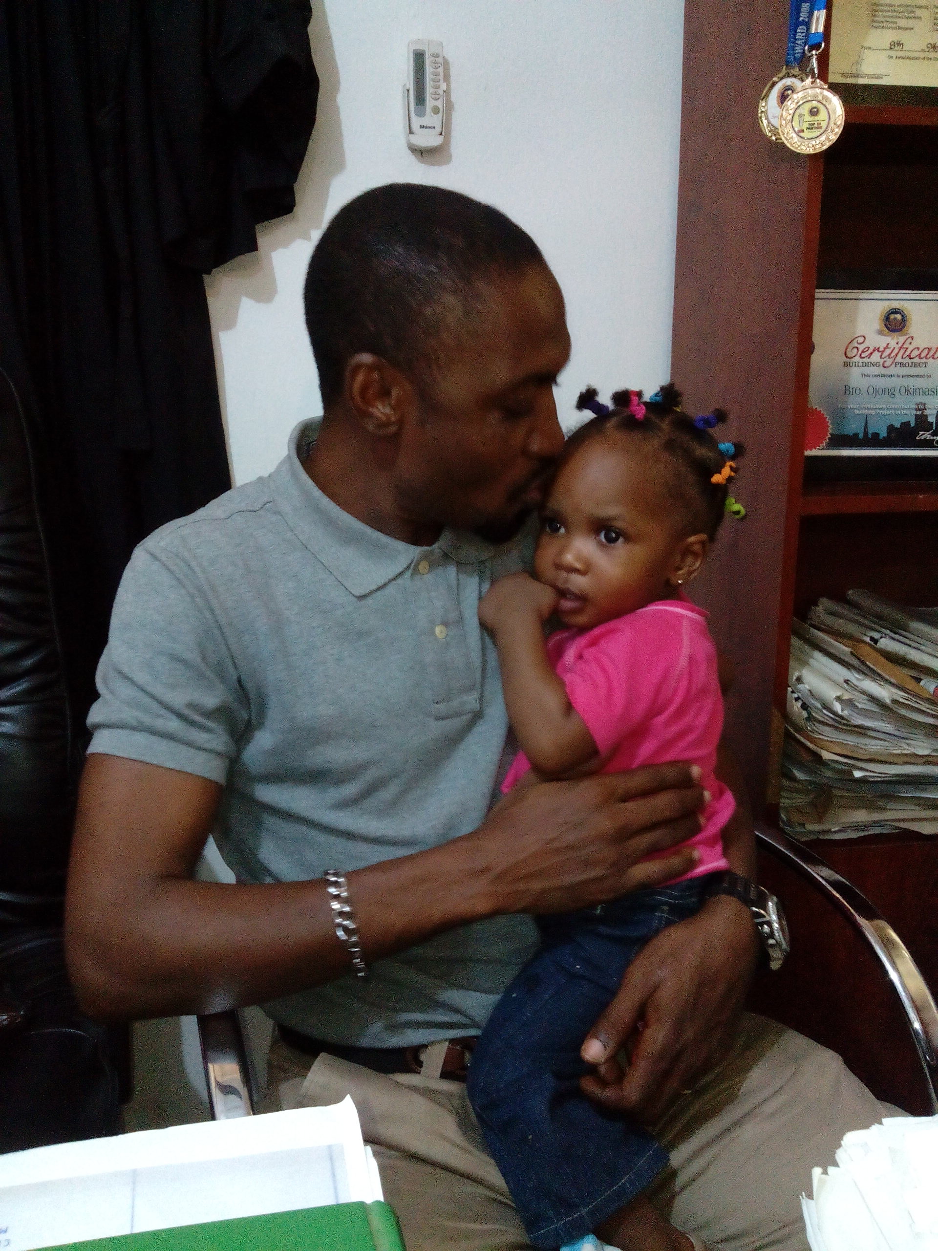 When he first ran for the Ikom I seat in 2010, he had to succumb to party pressure and let his ambition fly out. It was a bitter experience but Okimasi took it all in his stride and worked at improving himself for this day upon us. In 2015 he boldly believes his credentials and the fact that he has been articulating people oriented programmes are his trump card. First, he parades a degree in Law, has been called to the Nigerian Bar and has two Masters’ degrees; one in Political Science and the other in Criminology. His PhD in Criminology is in view. His consultations have been sustained because he believes that the mandate must come from the people who hold the key to electoral success. Again Okimasi Ojong is quick to point out that he has received political mentorship from his father, the late Ntufam Matthew Ojong, a consummate politician who ran for governor of Cross River State in the SDP/NRC era. Sired from those roots, one begins to understand why Okimasi’s approach to politics is authentic, issue driven and with an intellectual bent. He passionately told www.calitown.com that he misses “dad every day, he was my friend and confidant, had answers to all knotty questions and just was a father”. You can see as he nestles his pretty daughter on his laps that he misses his father and is showering affectionate love on his own daughter. Then his wife walks in, is introduced to www.calitown.com and it is obvious from their interaction that she is his stabilizing factor; a real case of behind every successful man, there is a woman.